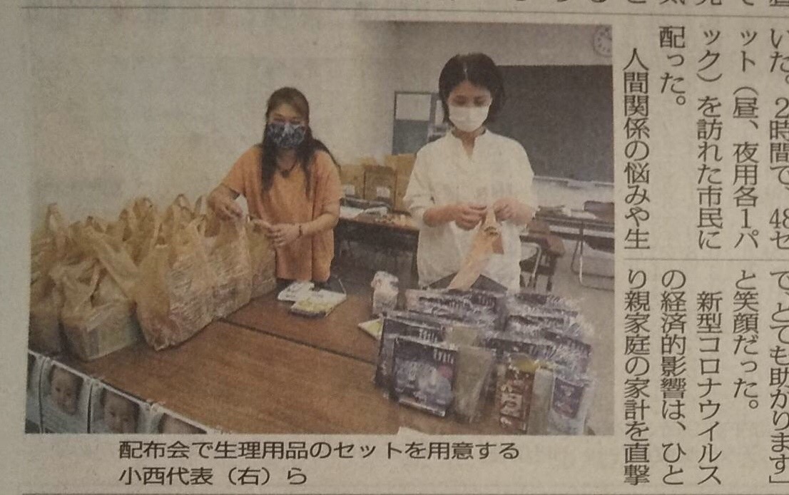 10月21日発行の朝日新聞に、10月19日山口県山口市アルク葵店で開催した生理用品配布の様子が掲載されました。